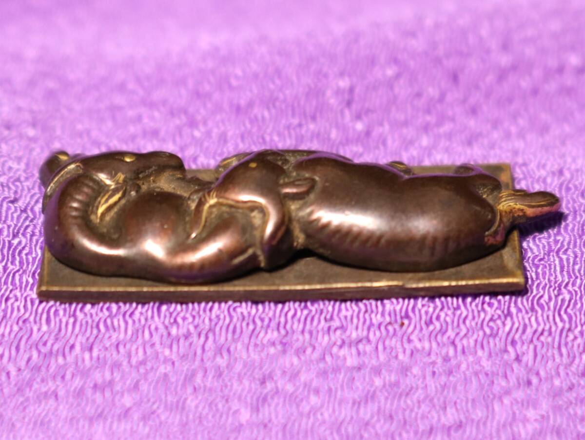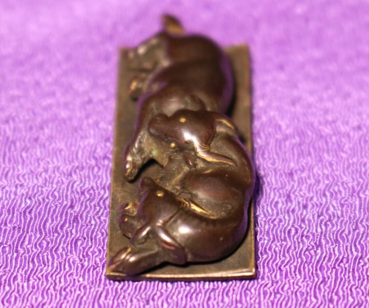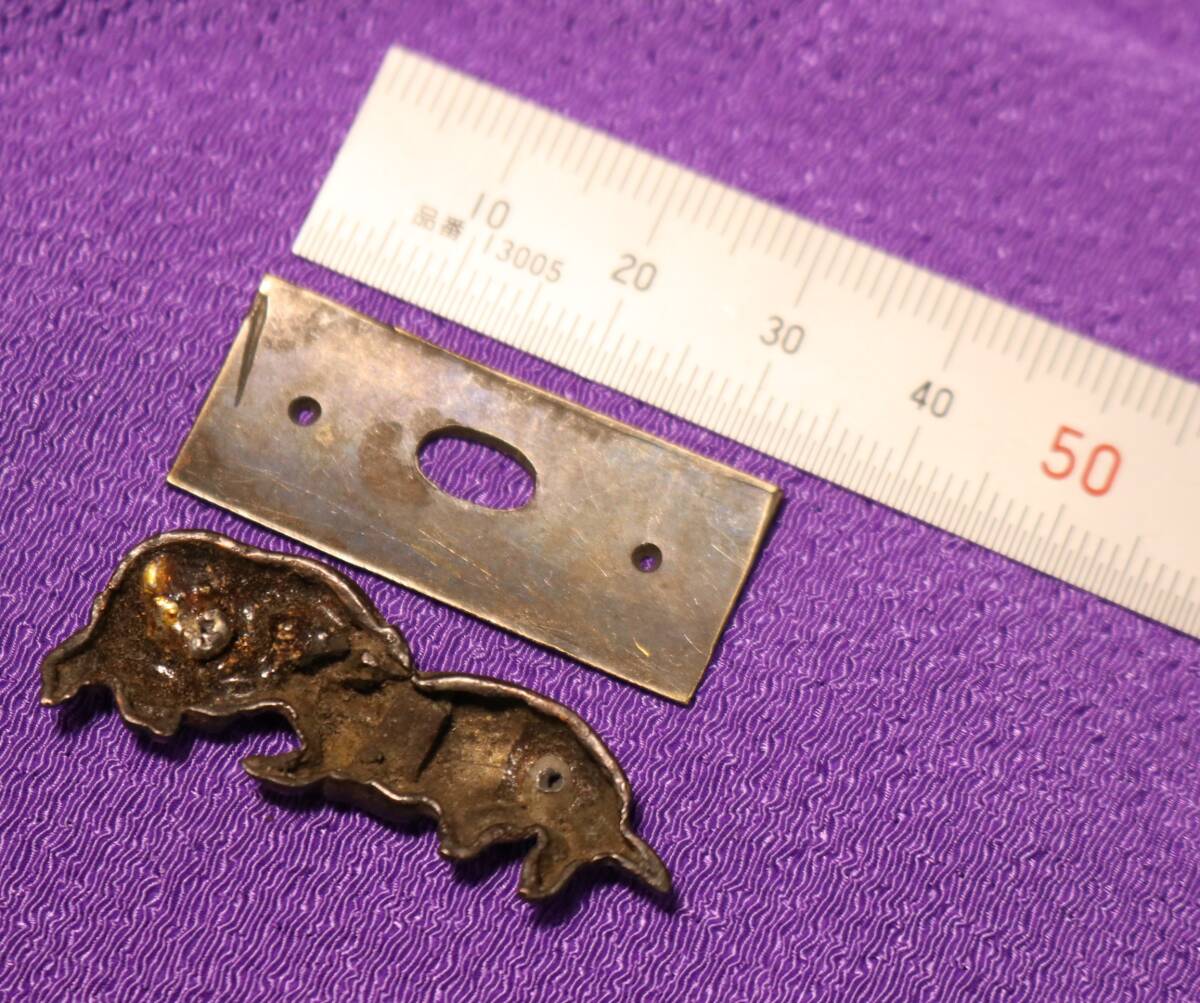 時代目貫、金彩入、古銅~闘牛~煙草入用