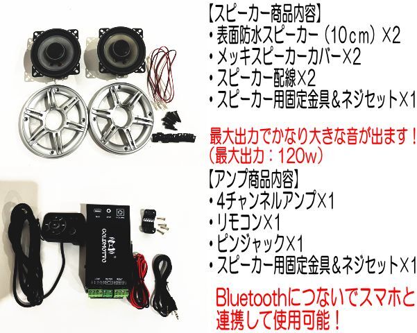バイク スピーカー&アンプセット ツーリング 音楽 120w Bluetooth ブルートゥース ペアリング オートバイ 最大4スピーカー ③ 收藏