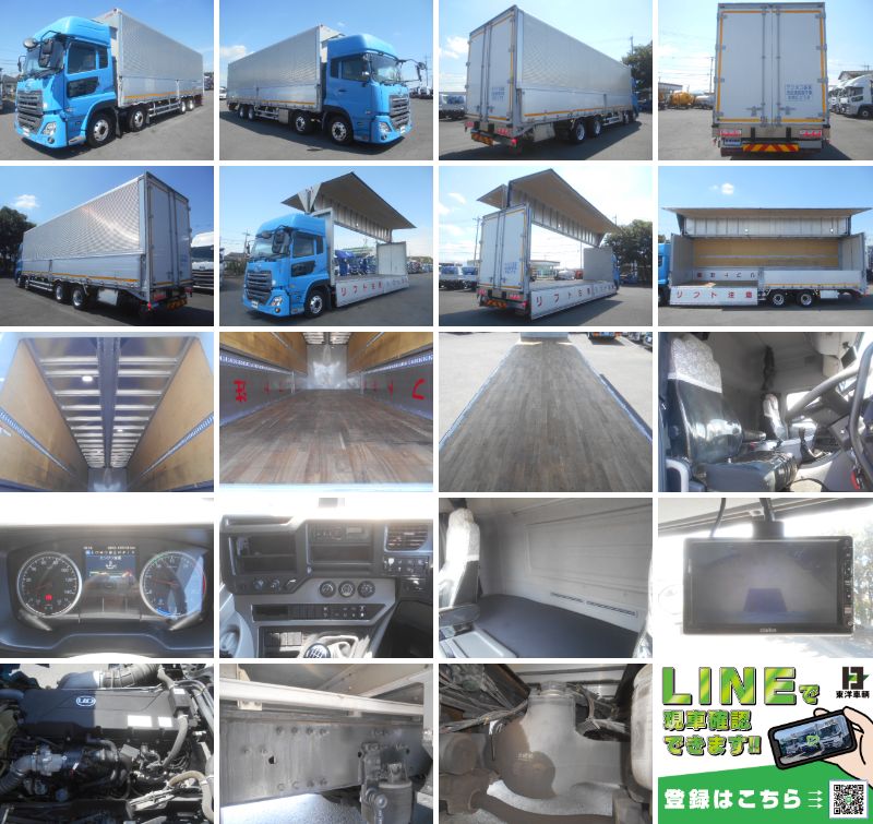 アルミウイング 上物:日本フルハーフ製 4軸低床 後輪エアサス 積載13.6t 荷台寸法:964×241×263 荷台床:木張り 可倒式中柱 内フック13対 ラッシングレール2段 ハイルーフ 390馬力 リターダー付 燃料タンク600L(300+300) アルミホイール バックモニター付 走行47万km 7速ミッション 排ガス適合(各都市登録&乗り入れ可) タイヤサイズ:245/70R19.5 |