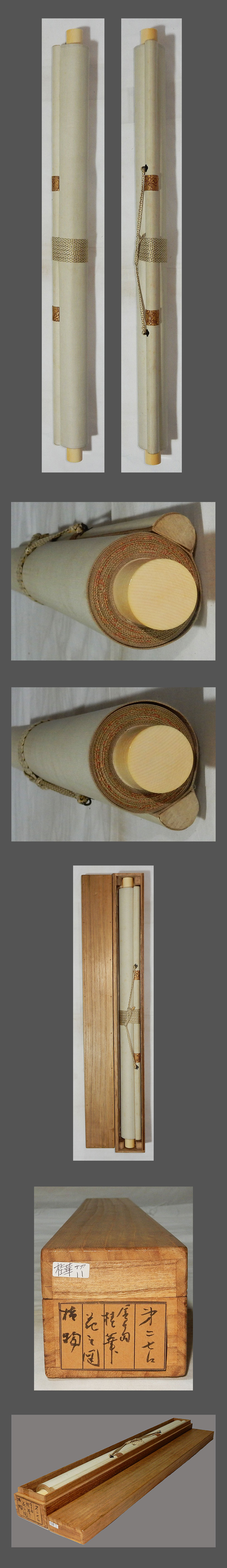 ・掛軸の軸先ですが、細心の注意を払って梱包しておりますが、 配送中の振動・気温・経年劣化等で外れてしまうことがあります。 軸先の外れは、破損ではございませんので、返品の対象にはなりません。 大変お手数ですが、お客様ご自身での修復をお願い致します。 ・添付写真の画像と説明文でご理解頂ける方、ご入札を宜しくお願い致します。 ・添付写真の画像は撮影の光度により、現物と若干の色合いの相違が生じる事があります。 ・添付写真の画像は受取完了のご連絡を頂いた後に速やかに消去しますのでご了承下さい。 ・土・日・祝日はお休みさせて頂きますので、商品発送は、月曜日以降になります。 ・祝日の場合は、翌日の平日以降の発送になります。 ・土・日・祝日は、メールの返信が若干遅れる事がございます。どうか、ご了承下さい。 ・時間的に余裕がない場合などでお答えが出来ない事も多々有ります。 ご不明な点は落札日前日までに早めにご質問下さい。 ・商品トラブルがあった場合は、直ちにご連絡下さい。 お取引に付きましては迅速・丁寧に対応させて頂きます。 ・落札後、できるだけ2日以内に連絡(返信)を頂ける方、 5日以内にご入金できる方の御入札を御願い致します。 ・新規の方や評価の総評が悪い方は当方の判断にて、入札取り消しを行う場合がございます。 ・お取引に付きましては、迅速、丁寧に対応致しますのでどうぞ、宜しくお願い致します。 ・古美術品や古物や古書画の出品が多いため、神経質な方がご入札される場合は、 ご自身が納得の行く価格でご入札ください。 ・万一、ヤフーのシステム障害により、公正なオークションができなかったまま終了し、 落札者様にご落札された場合は、当方より取引ナビで取引中止のご連絡を致します。 その時は、どうか、ご了承をお願い致します。 ・終了当日・直前の入札の取り消しは、 トラブルの原因となりますのでご遠慮お願い致します。 ・入札後の取り消し(キャンセル)は行っておりません。 ・落札後のキャンセル・返品はお断りしてます。 入札前によくご確認頂き、間違いのないようにご注意下さい。 |
