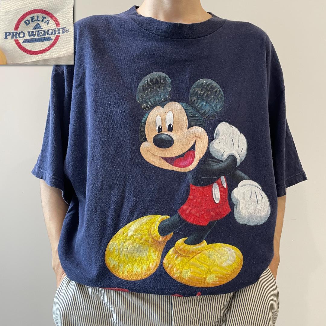 GG290 2000年代 Tシャツ 00s Disney ミッキーマウス フロリダ 蛍光ゲル USA製 ビンテージ 古着 ダブルステック Lサイズ デルタタグ 黒T 收藏
