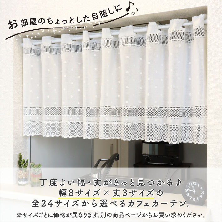 カフェカーテン サイズオーダー 144cm幅 95cm丈 ドット セミオーダー サイズ注文 洋風 小窓カーテン キッチンカーテン(28956) 收藏