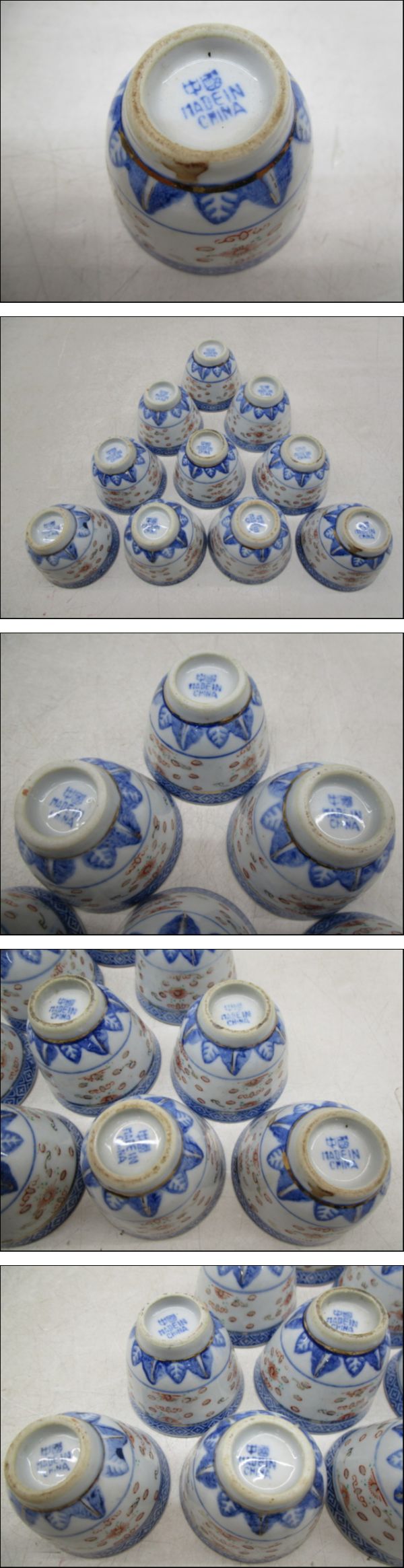 ★手0356 中国景徳鎮 蛍透茶碗 染付 金縁 赤彩 透け茶碗 中国茶器 湯呑 蛍手 蛍焼 茶道具 92508281 收藏
