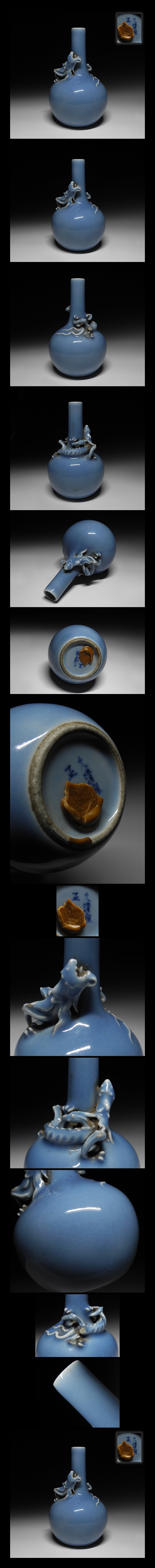 緑屋i■ 中国古玩 粉青釉 天青釉 龍貼 天球瓶 花瓶 壺 大清雍正年製 唐物 時代物 i9/1008-8/30-5#60 收藏