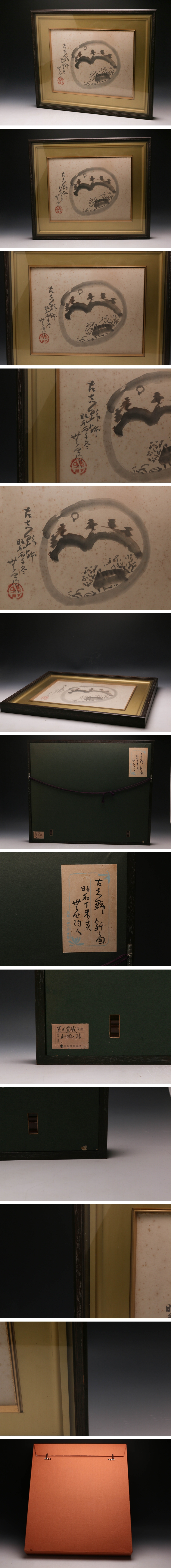 【佳香】人間国宝 荒川豊蔵(無田陶人) 『古志野鉢画(山の絵の鉢)』肉筆 水墨画 額装 本物保証 收藏