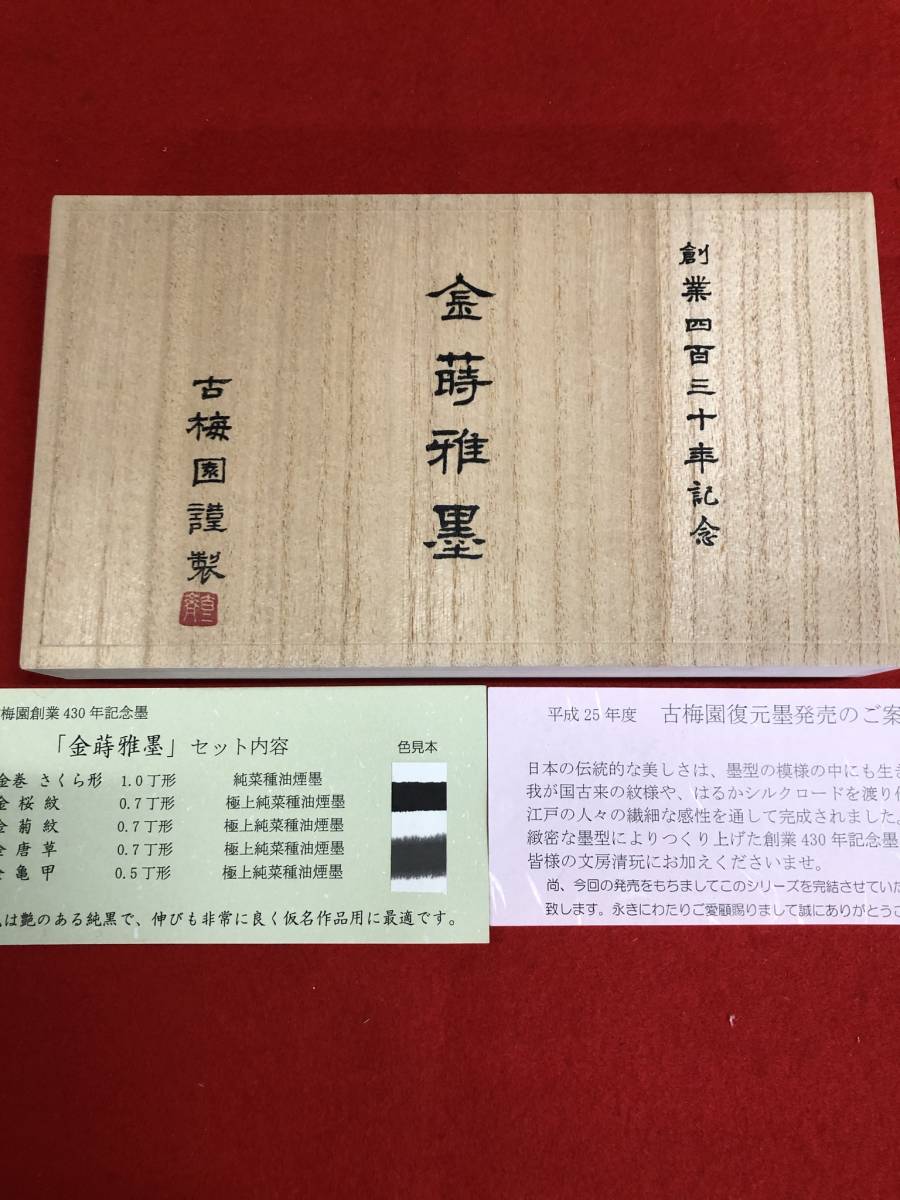 古梅園 書道墨 創業430年記念墨『金蒔雅墨』金箔蒔限定稀少墨 高級油煙墨 未使用・新品保管品 收藏