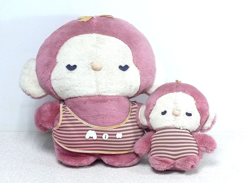 1017E13*10B▲昭和レトロ ピンクのおさるさん ぬいぐるみ MONTA 2点セット まとめて ビッグ 大サイズ 中サイズ 希少品 人形 猿 收藏