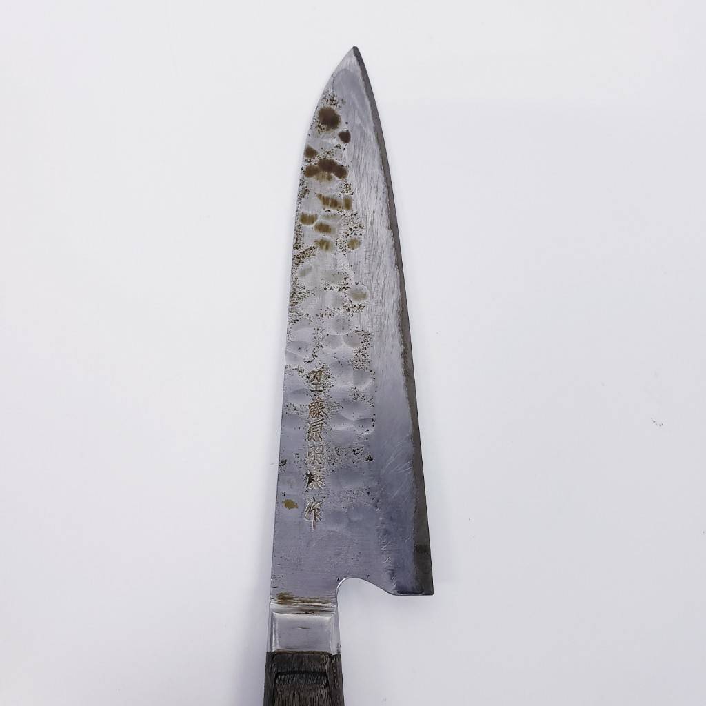 商品名:包丁 ブランド:不明 型 番:刀工 藤原照康作 年 式:不明 付属品:無し サイズ :画像にてご確認下さい。 ※若干の誤差がある場合がございます。 状態について ランク 【D】稼働や動作の確認は行っておりません。 コメント ・全体的に使用、経年によるスレ・傷・汚れ、錆があります。 ・刃先欠けてます。 ───────────────[ 状態ランク表 ]──────────────── 【N】 新品・未使用品の新古品です。 【S】 キズ・汚れがほとんど見受けられず、非常に状態の良い商品です。 【A】 わずかにキズ・汚れがありますが、全体的に状態の良い商品です。 【B】 キズ・汚れなど、使用感が見受けられますが、 中古品としては比較的良好な状態です。 【C】 キズ・汚れ・型崩れなどの目立つ使用感がありますが、 ご使用には問題のない商品です。 【D】 稼働や動作の確認は行っておりません。 【E】 破損や欠損などが見受けられる商品ですが、 素材やパーツとしての価値があり、リメイクや部品取りにおすすめの商品です。 ※ランクは社内基準です。 ──────────────────────────────────────── 送付方法 ゆうパック(着払い) 60サイズ ※千葉市稲毛区からの発送となります。 ※出品時に商品を梱包しているため、基本的に※「同梱不可」となります。 ※こちらの商品は発送のみの対応となります 防犯上の観点から、 【引取り限定】【家財便または引き取り】の商品以外は 従業員の安全の為、直接の引取りはお断り致します。 | |||