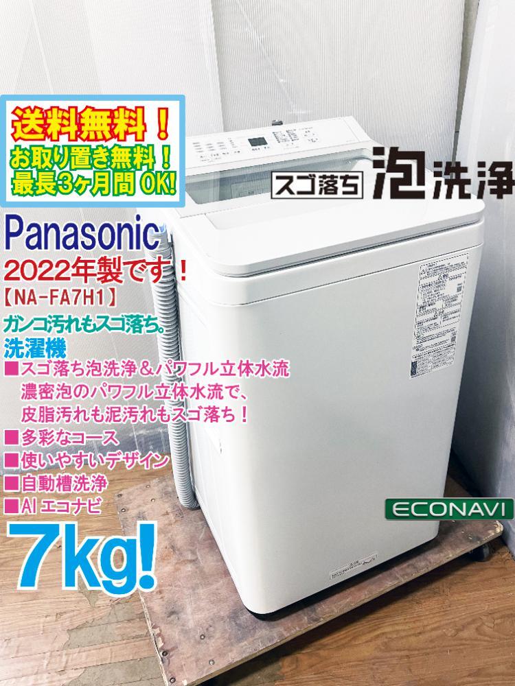送料無料★2022年製★極上超美品 中古★Panasonic 7kg ガンコ汚れもスゴ落ち!スゴ落ち泡洗浄・パワフル立体水流 洗濯機【NA-FA7H1-W】FOJJ 收藏