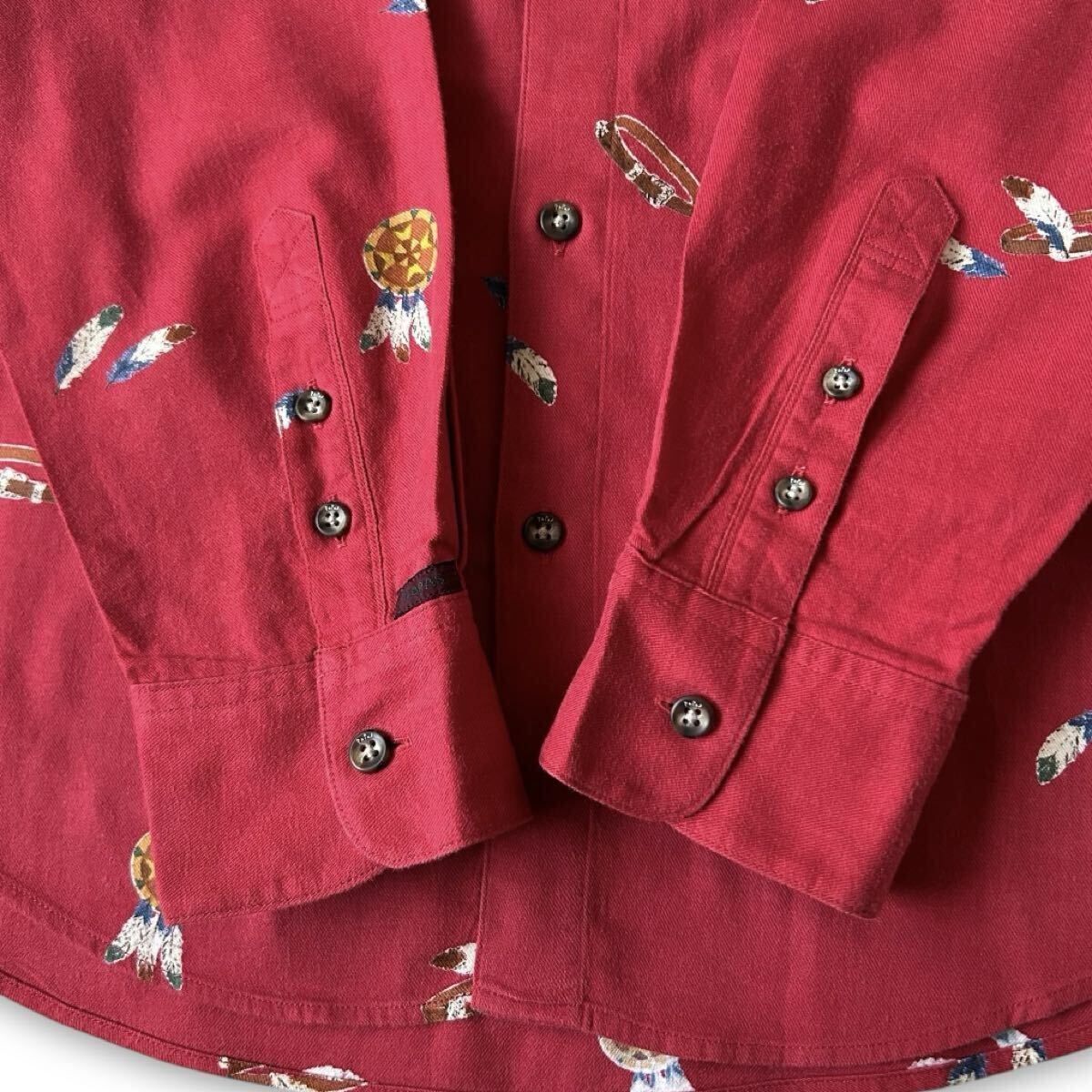 良品 PAPAS パパス 起毛 ソフトタッチ ウエスタン 総柄 ボタンダウン シャツ M 48 日本製 長袖 BD ロゴプリント トップス メンズ 秋冬 收藏