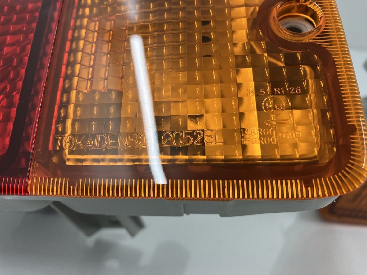新車外しですが、保管時についた汚れ、擦り傷等ございます。 破損、割れはありません。 新型S510Pハイゼットトラック エクストラ スタンダード車からの取り外しになります。 ブレーキランプ、スモールランプは純正LEDユニットですがウィンカーはハロゲンバルブになります。 | ||||