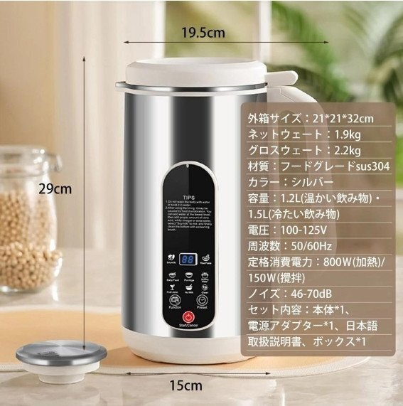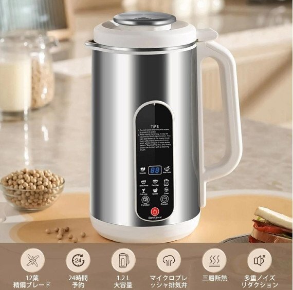 豆乳メーカー 豆乳マシーン ジューサーミキサー スープメーカー お粥メーカー 豆乳ブレンダー 1.2L 自動調理 濾過不要 24時間予約機能 收藏