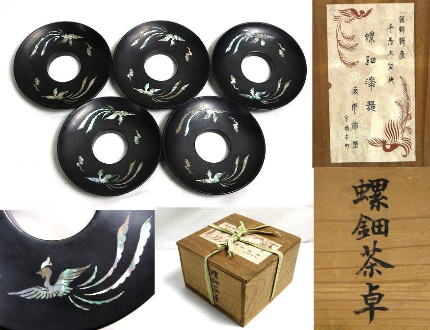朝鮮特産 螺鈿 漆器 海市商会 茶托 共箱【説明欄に詳細写真有り】の出品です。