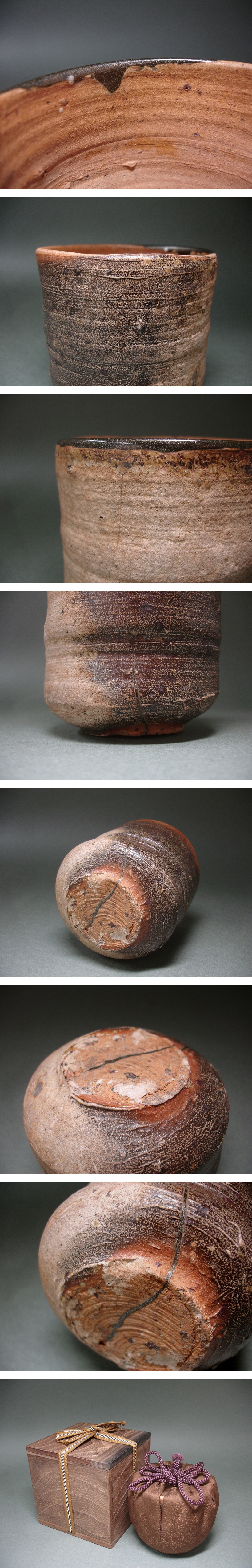 慶應◆桃山時代 古信楽茶碗 名碗「水の子」を彷彿とさせる筒茶碗 仕覆・上手桑造箱入 秀逸桃山茶道具 收藏
