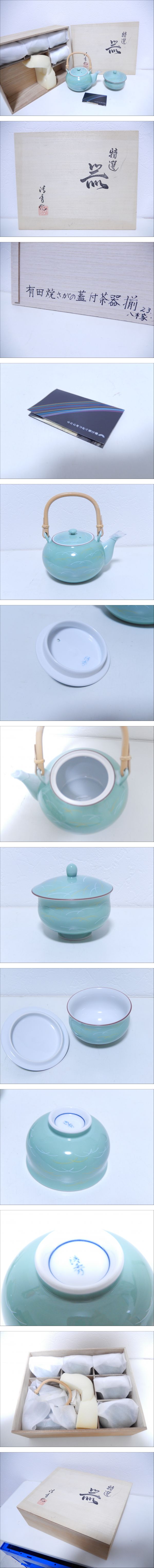 【管SH0648】4000円~ 未使用 有田焼 特選 さがの 清秀 作 蓋付 茶器揃 5客揃 共箱 古美術 骨董 收藏