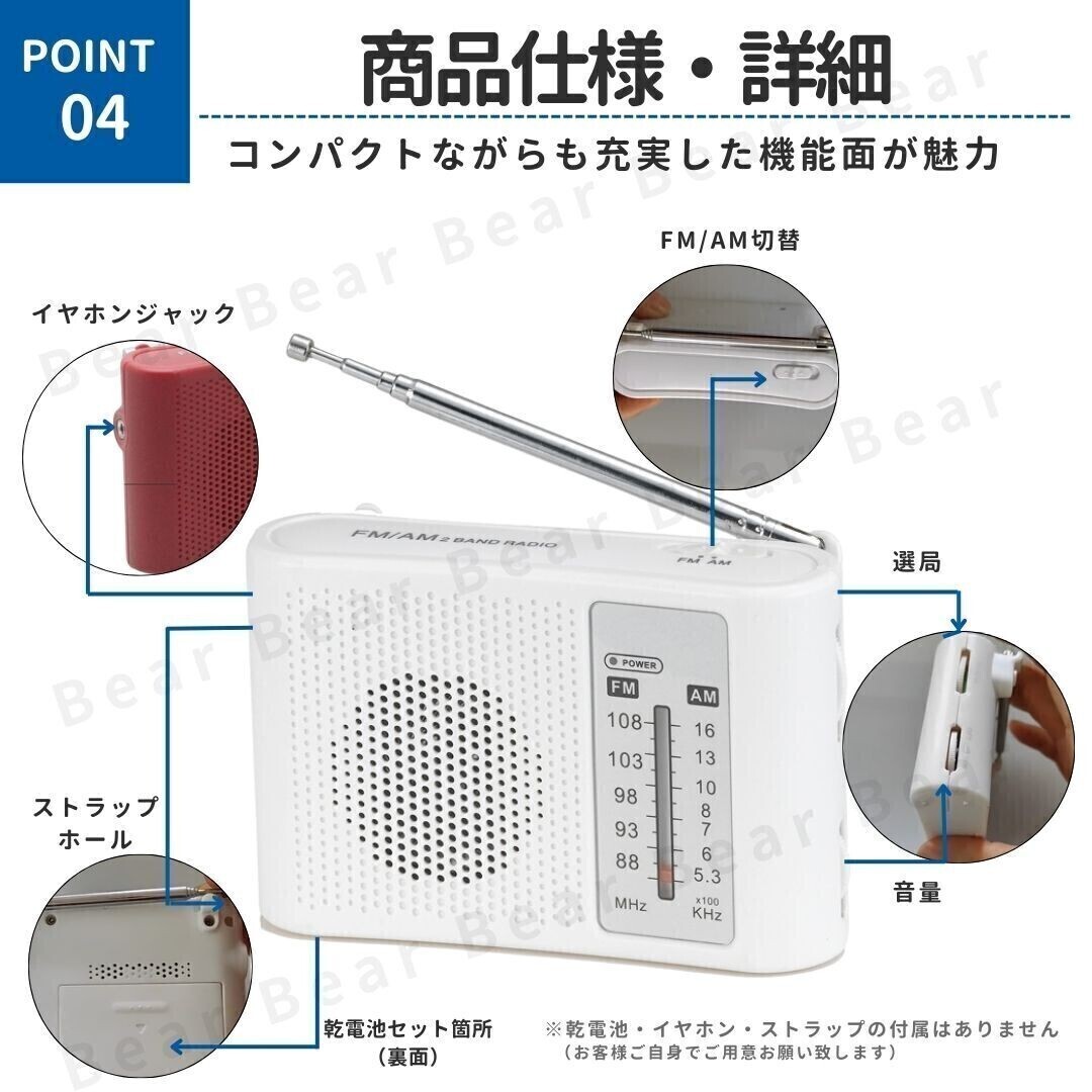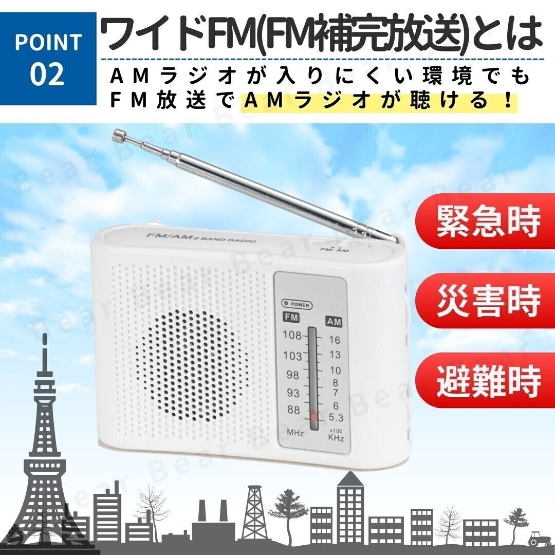 携帯 ラジオ ポケットラジオ ワイド FM AM ポータブル 本体 防災 スピーカー 電池式 災害 対策 アウトドア 小型 ミニ fm am FMラジオ 白 收藏