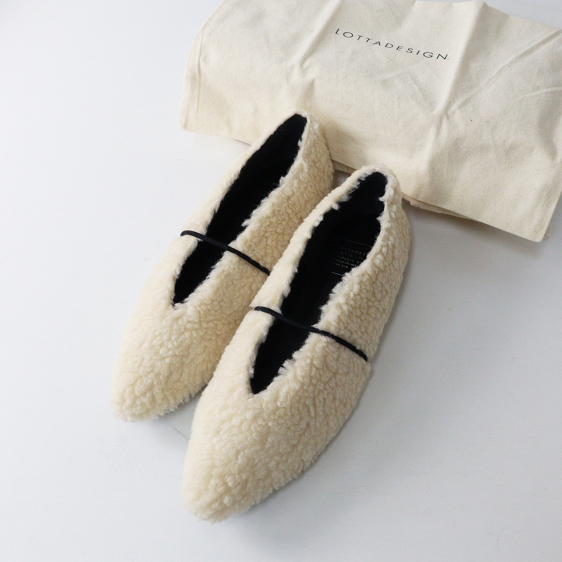 極美品 ロッタデザイン LOTTADESIGN ポインテッドトゥ モコモコシューズ 24.0cm\アイボリー ボア フラット 靴【2400014654516】 收藏