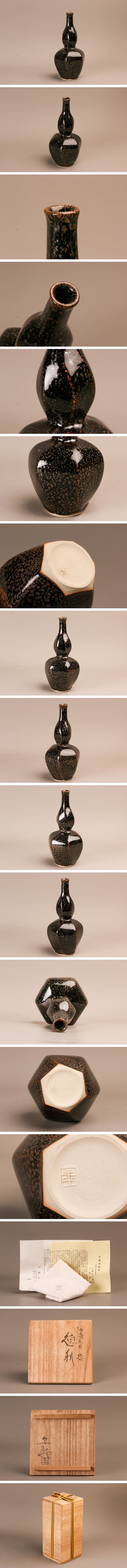 【SAG】十代 大樋長左衛門(年朗) 油滴天目 稔 徳利 共箱 共布 栞 本物保証 收藏