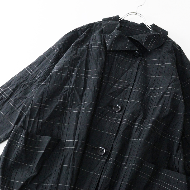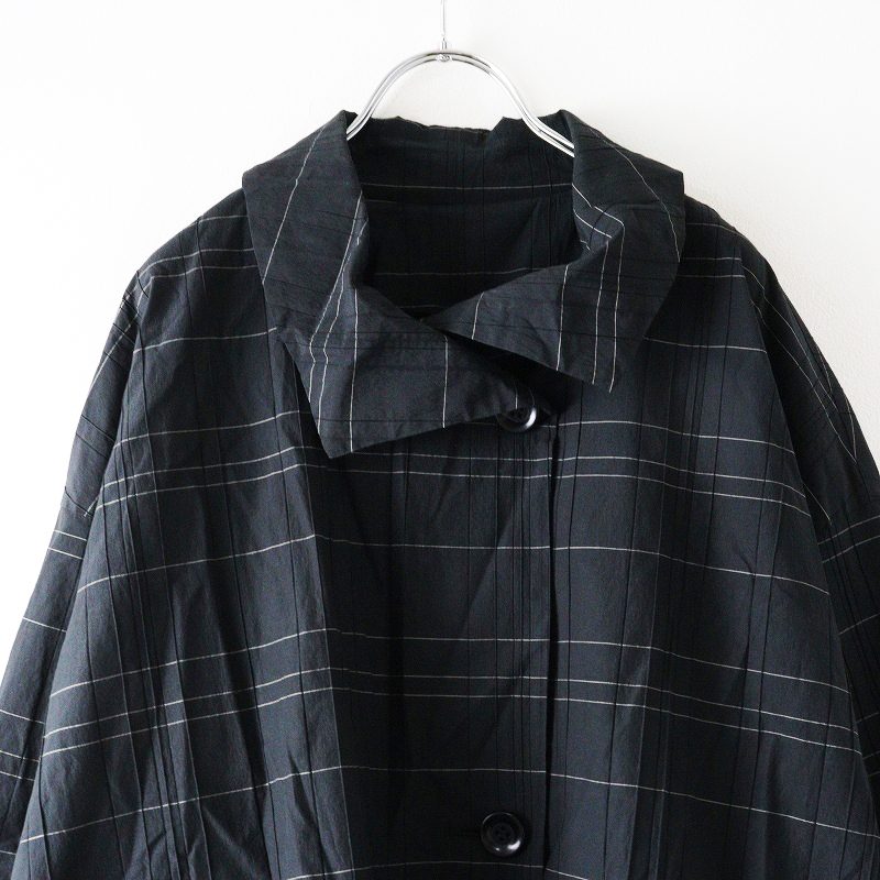 美品 センソユニコ 慈雨 ジウ Sensounico チェックロングコート 40\ブラック ワイド ジャケット アウター【2400014658811】 收藏