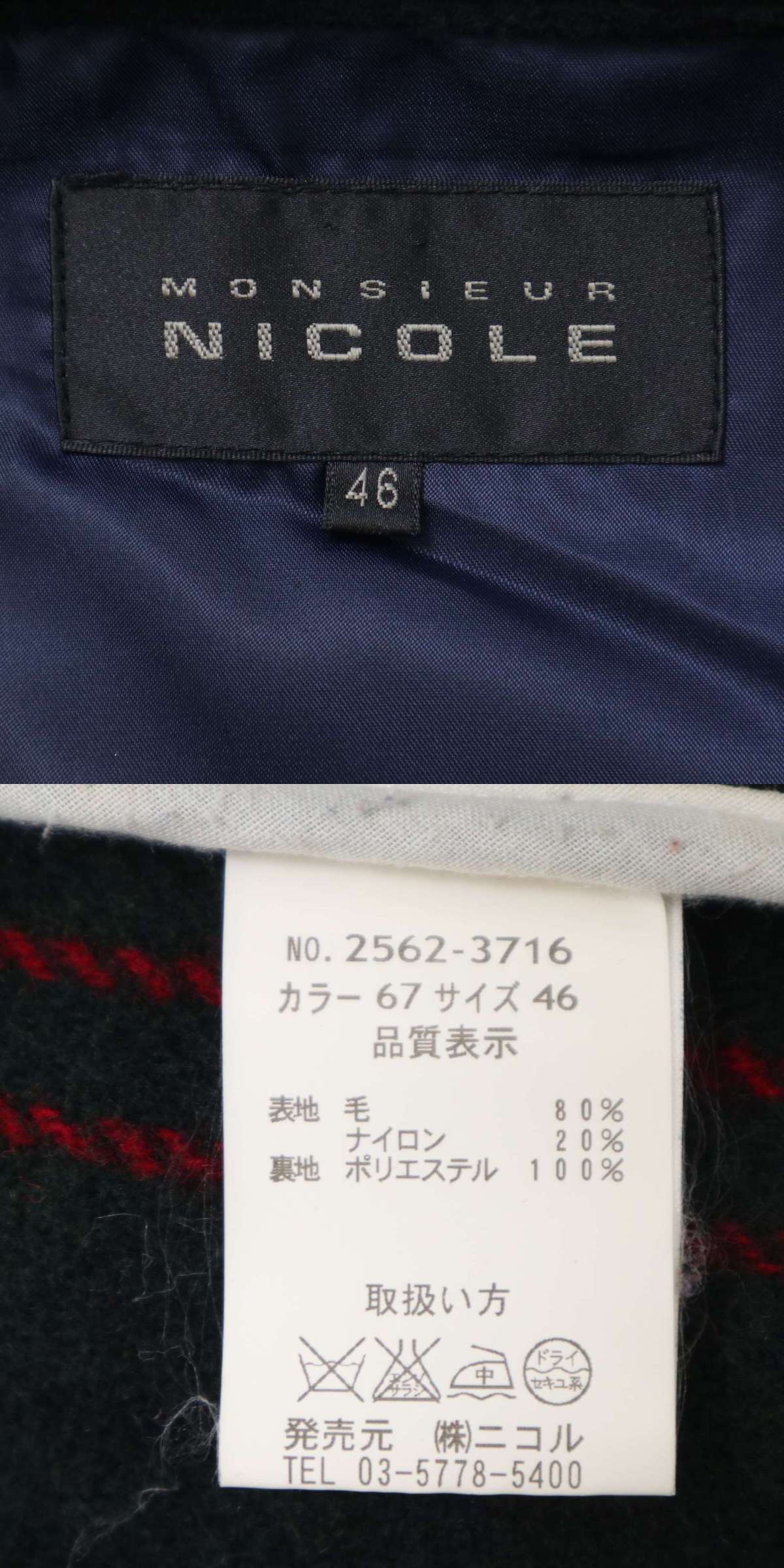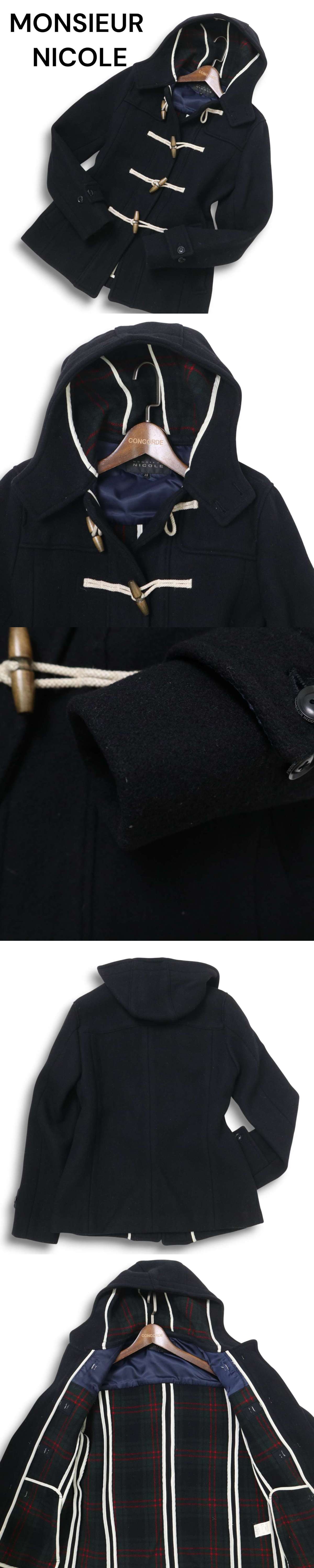 MONSIEUR NICOLE ムッシュ ニコル 秋冬★ 裏地チェック メルトン ウール ダッフル コート Sz.46 メンズ 黒 收藏