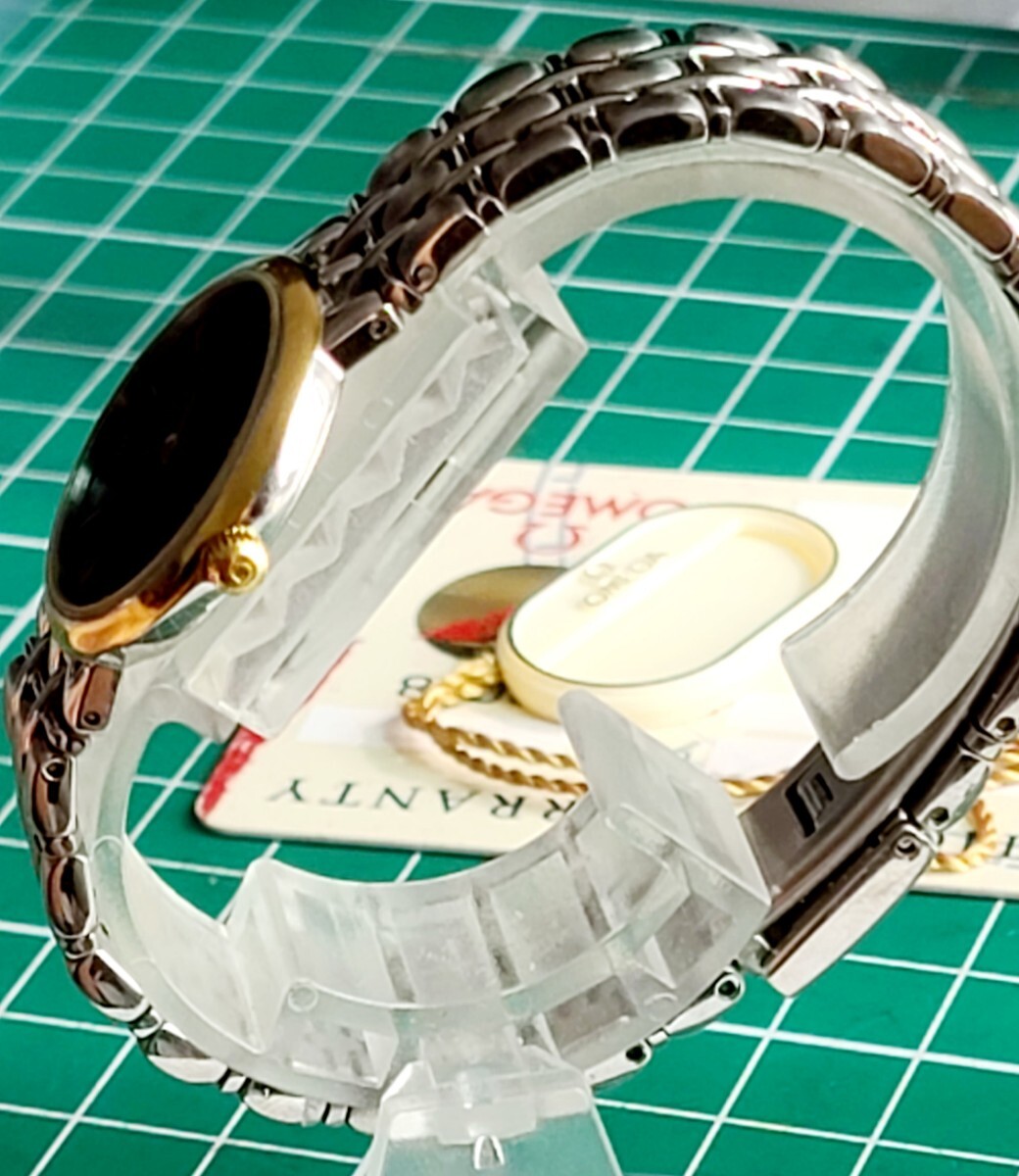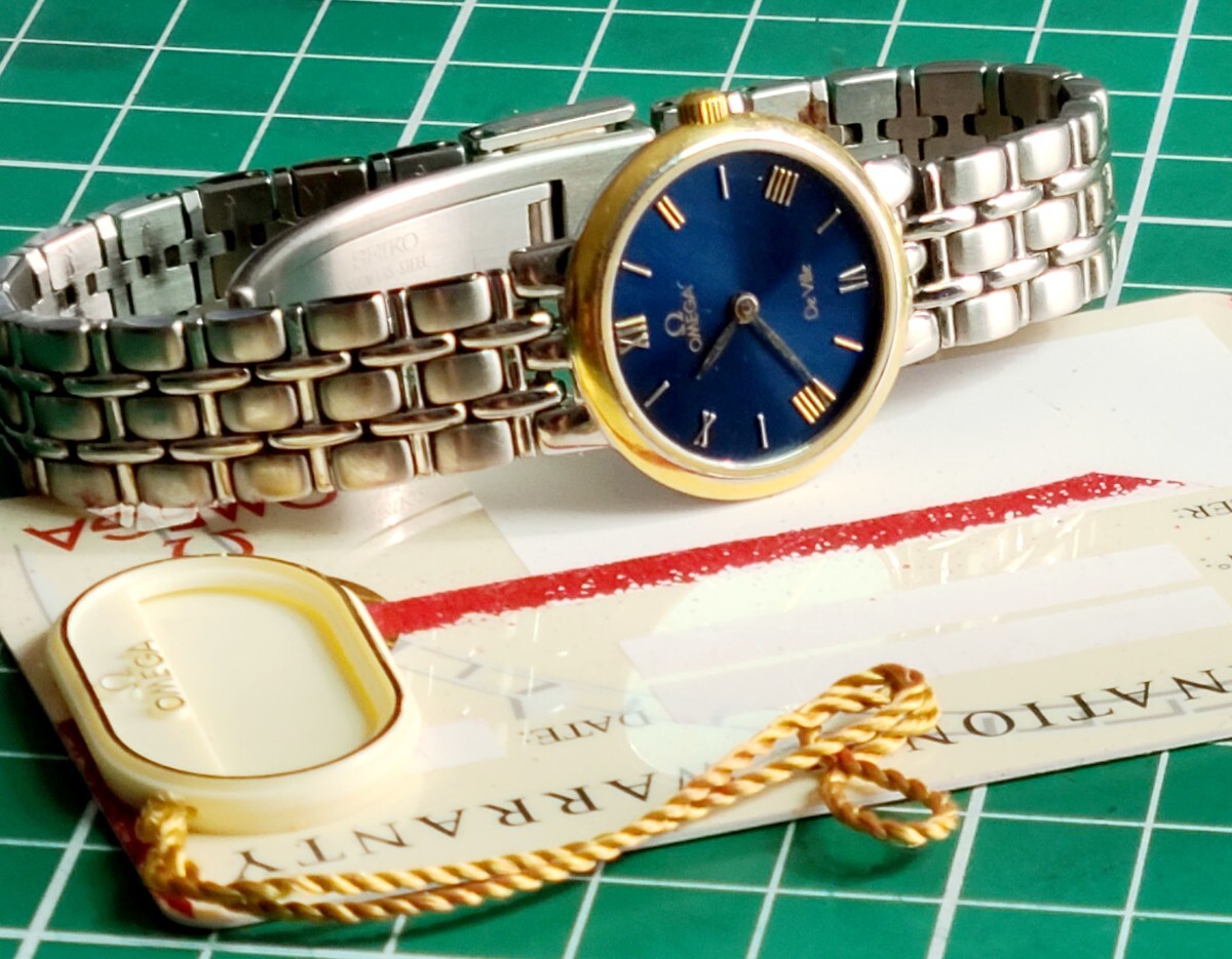 OMEGA オメガ デビル レディース 青文字盤 電池交換済み 稼働 他社ブレス仕様 付属品付き.
