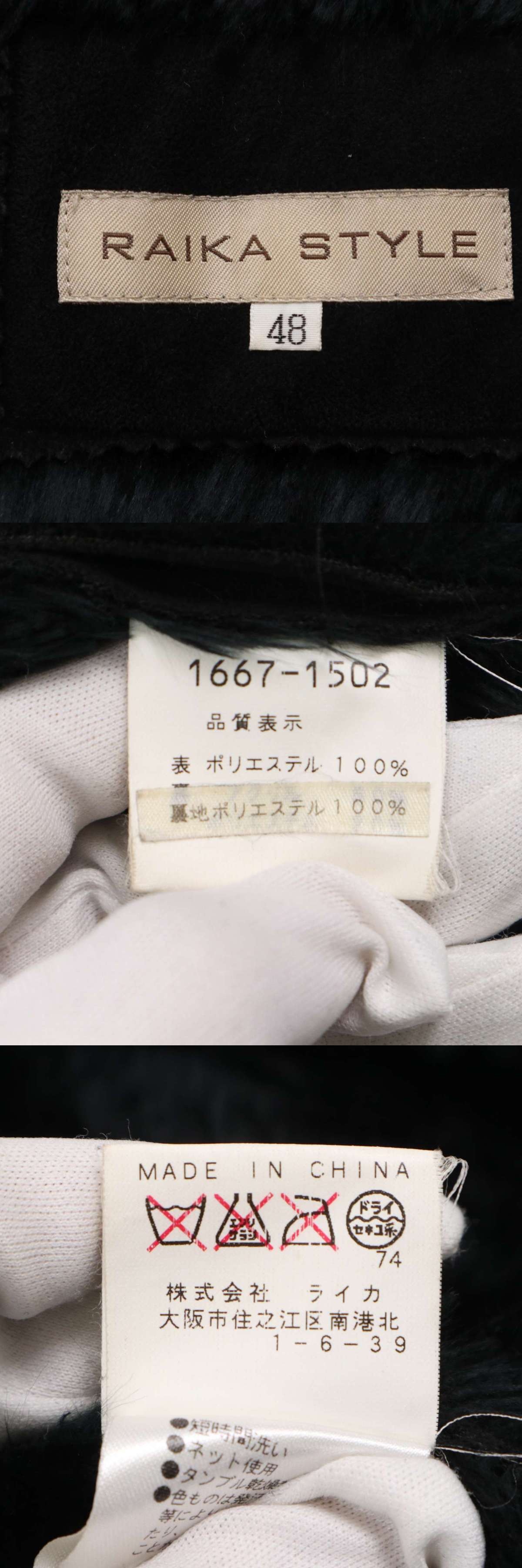RAIKA STYLE ライカ 秋冬 フェイク ムートン★ ジップ ジャケット コート Sz.48 メンズ 黒 收藏