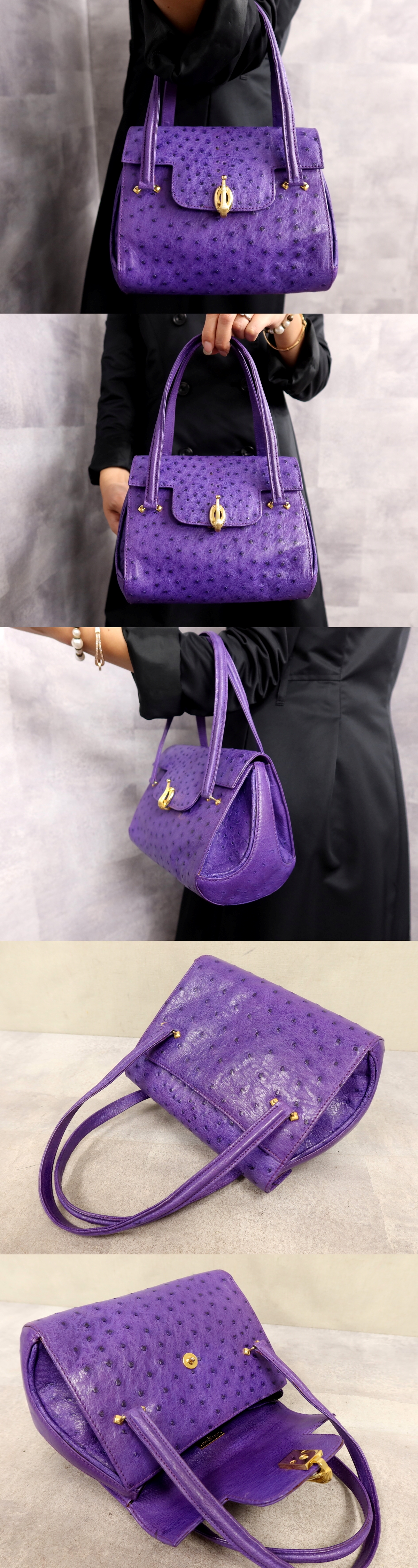 ●超美品●JARDIN DES SACS ジャルダンデサック●オーストリッチ 本 ダチョウ 革●ハンド バッグ●パープル●ゴールド金具●収納●Js62290 收藏