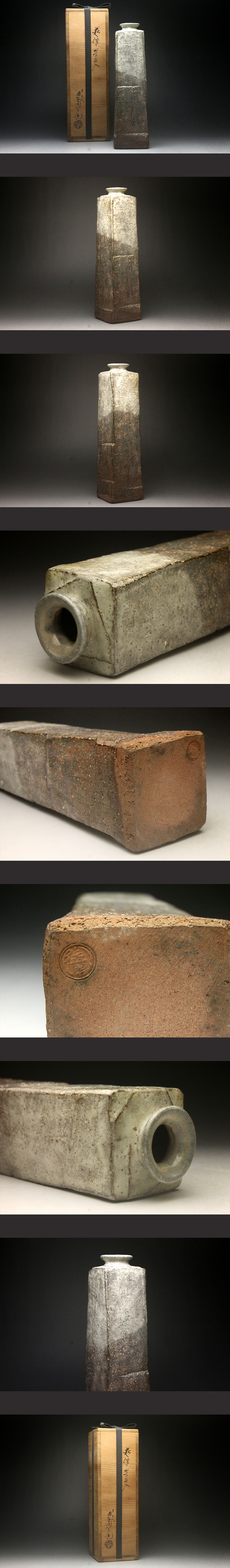 【余韻】 十二代 田原陶兵衛 萩焼 四方花入 共箱 華道具 本物保証<同梱可> 收藏