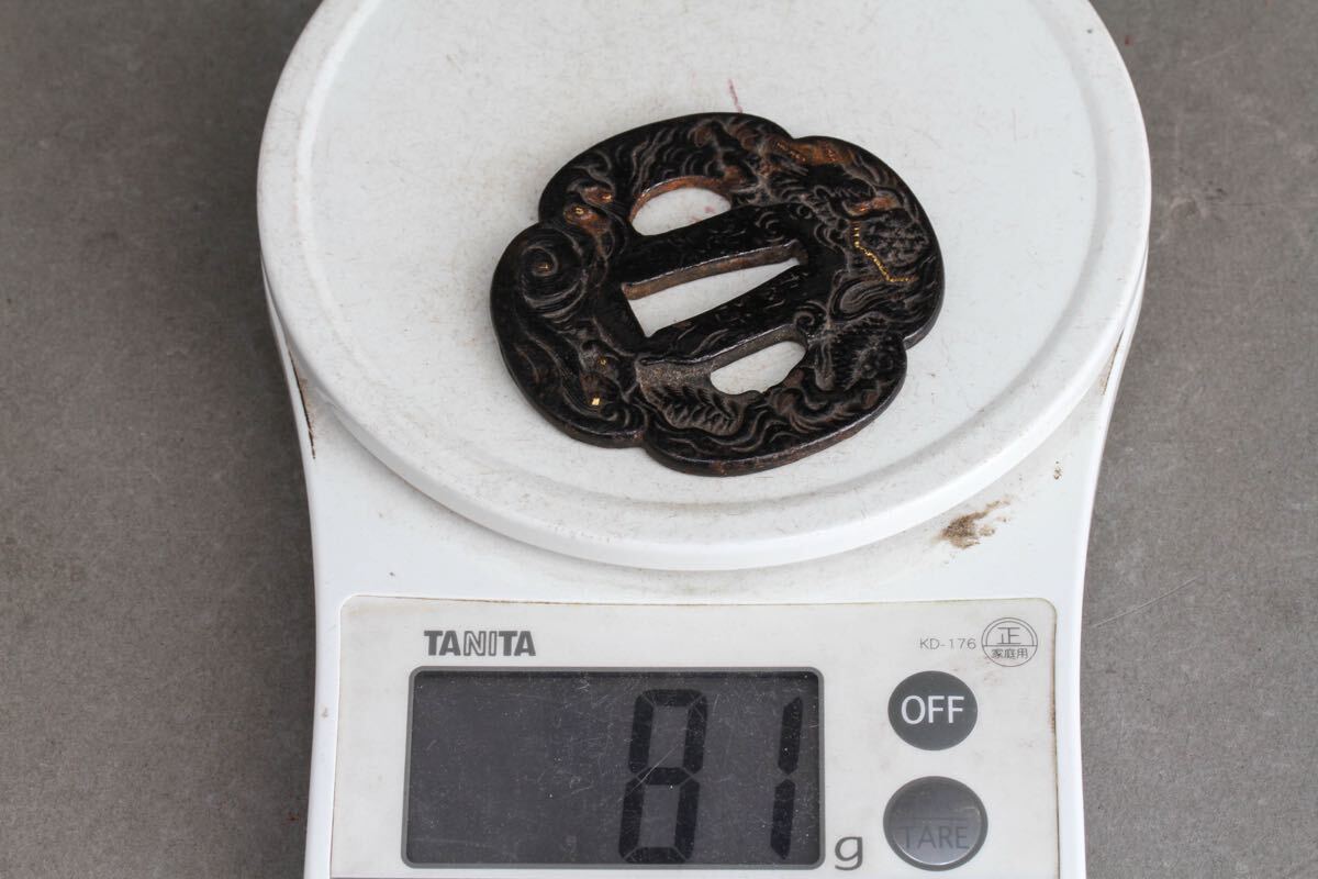 【久】2388 忠和 在銘 古鉄金象嵌龍紋 刀鍔 刀装具 日本刀装具
