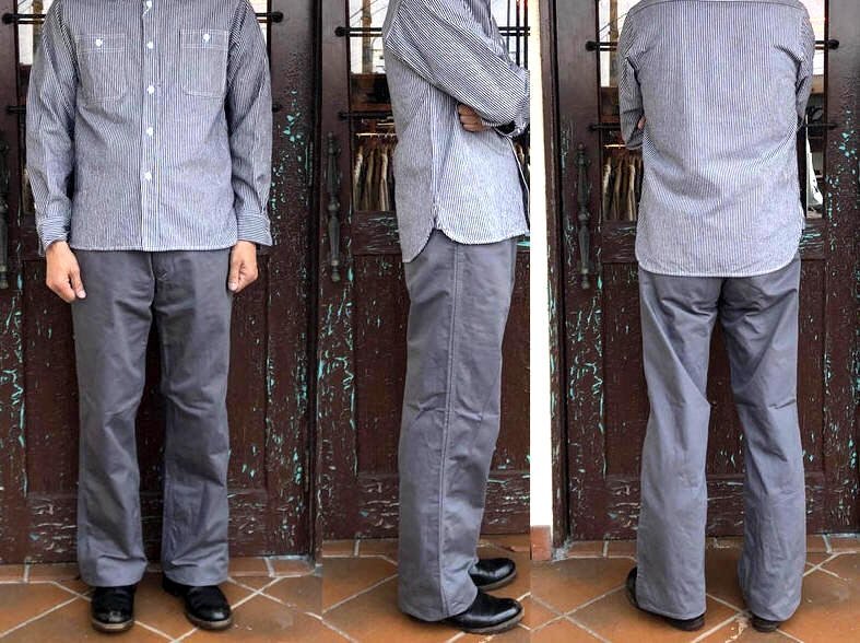 『クッシュマン』では、この傑作≪FRISCO PANTS≫の基本スタイルである「ゆったりとした太目のシルエット」はそのままに、お尻周りを若干小さくして腰回りのフィット感が良くなるように改良することにより、日本人の体系でもよりスタイリッシュに履きこなせるシルエットに仕上げました!