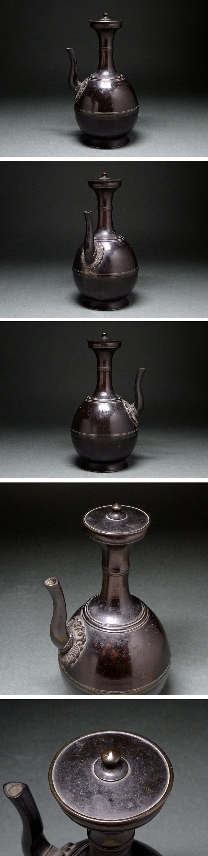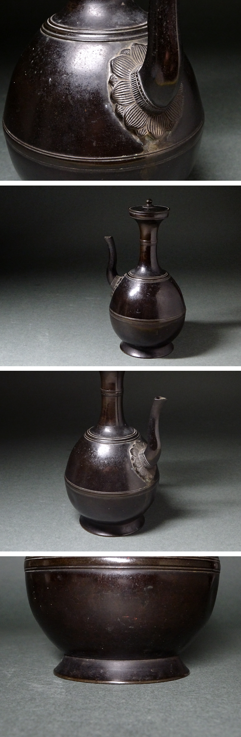 慶應◆仏教美術 南北朝~室町時代 鋳銅・轆轤挽 法隆寺形 布薩水瓶 桐箱付 收藏
