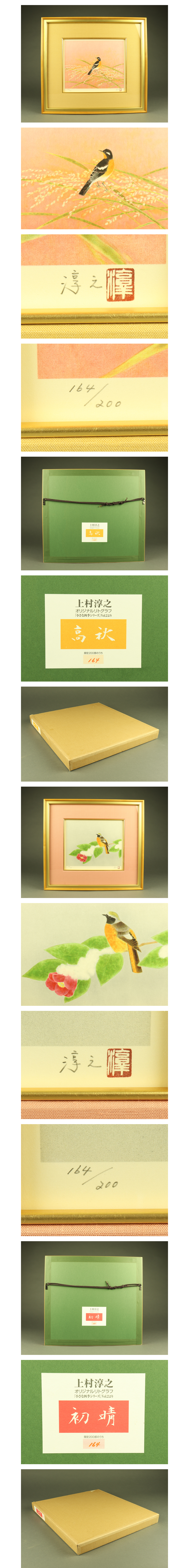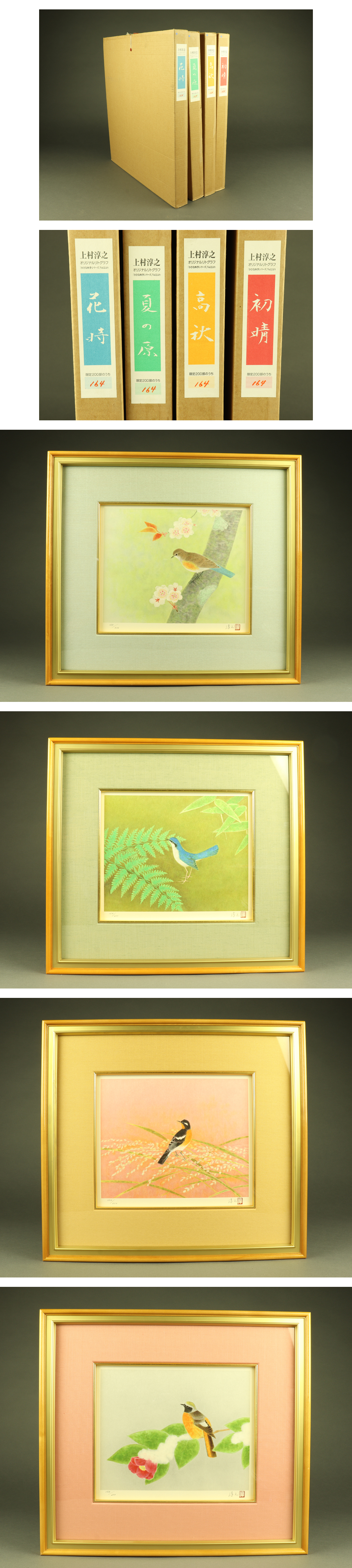 【宇】3801 上村敦之 リトグラフ「小さな四季シリーズ」Vol.2より 四点纏めて 164/200 額装 收藏