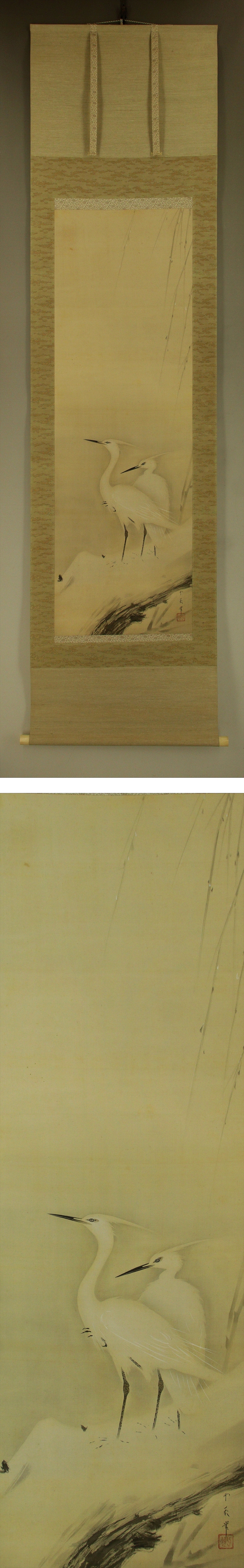| №2510012【模写】堂本印象【白鷺図】◆絹本◆合箱◆掛軸 | |