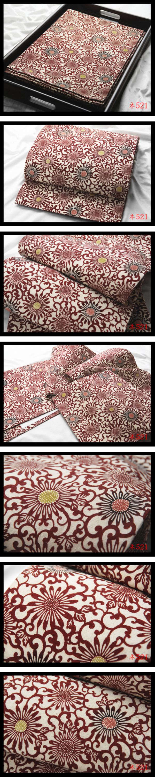 【ネ521】厳選逸品 紬 染め帯 唐草菊紋 象牙色地紅海老茶色 気品豊かに 正絹高級美術開き名古屋帯 ◇検◇簪着物袋帯名古屋帯帯締め 收藏