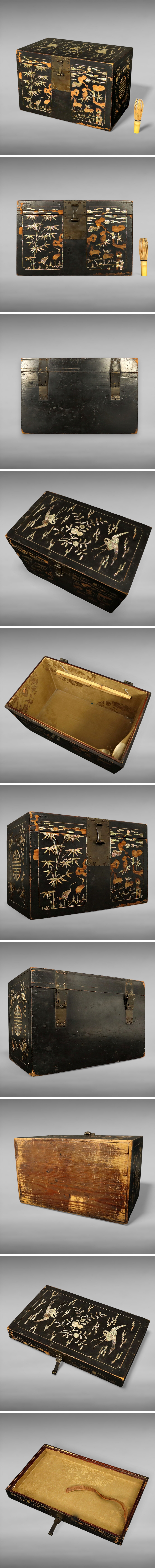 李朝期 青貝 螺鈿 小箱 竹鶴文 韓国美術 漆芸 古美術 骨董品 文箱 漆器 1561vggzN 收藏