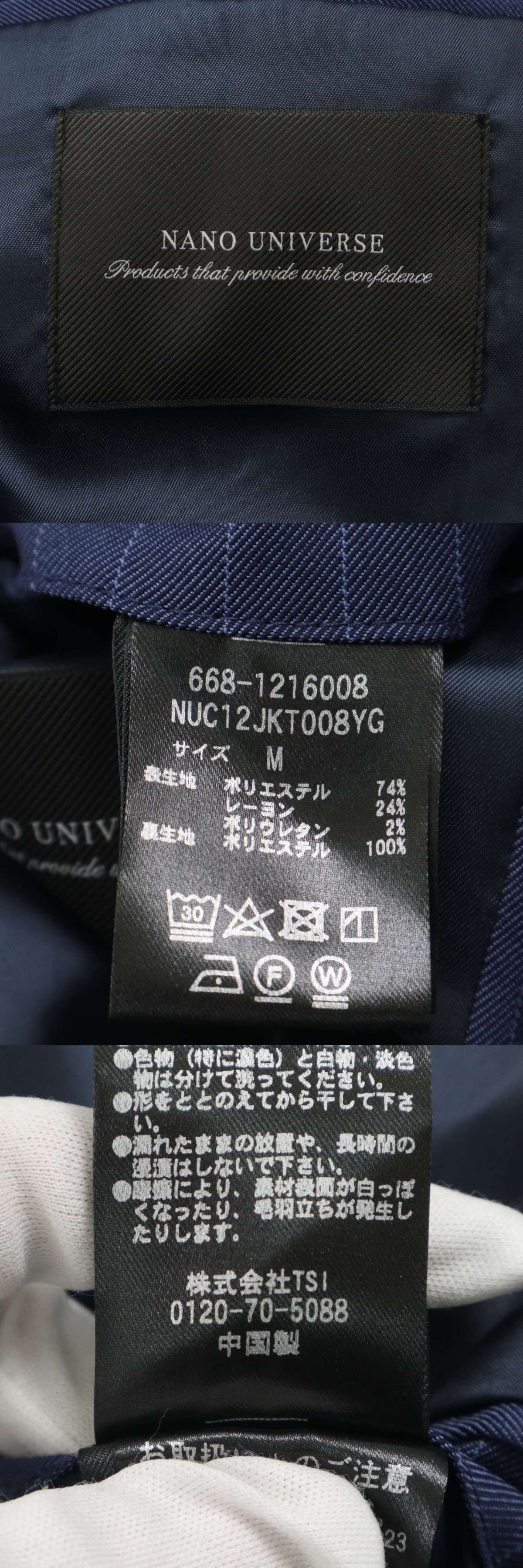 nano universe ナノユニバース 通年 総裏★ ストライプ アンコン テーラード ジャケット Sz.M メンズ ネイビー 收藏