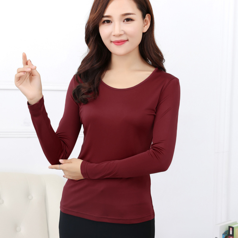 ☆ ワインレッド ☆ XLサイズ ☆ シルク 長袖 肌に優しい mmskts802a 長袖 Tシャツ レディース トップス ロンT ロング インナー カットソー 收藏