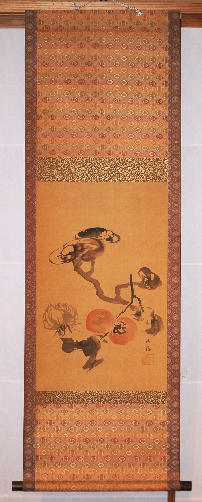 【真作】高島北海「万事如意(如意棒と柿)」軸 掛軸 日本画 山水 古画 肉筆 絹本 古美術 古書 掛け軸 骨董 |
