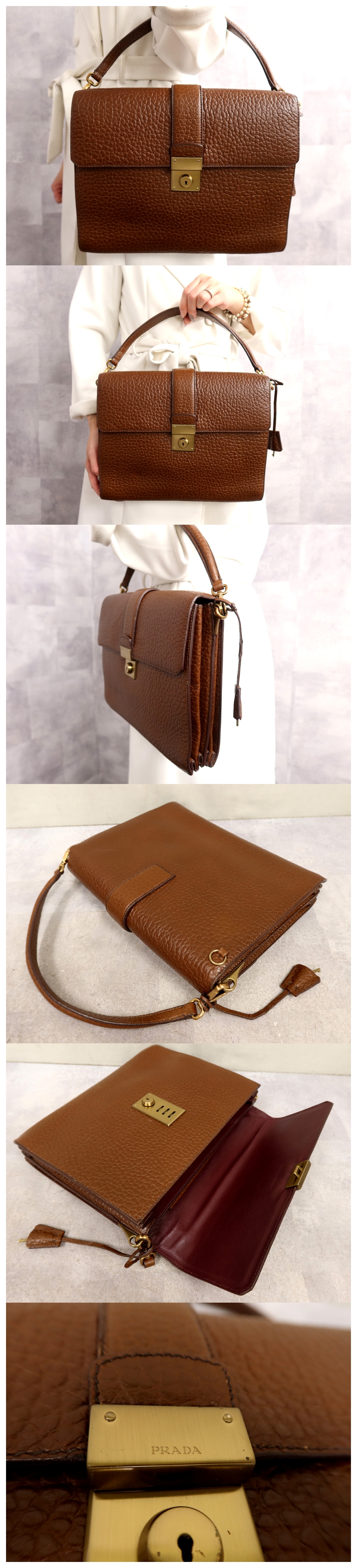 ●超美品●PRADA プラダ●ワンハンドル●カーフ レザー 本革●ハンド バッグ●ブラウン●ゴールド金具●イタリア製●B5 収納 書類●Js64671 收藏