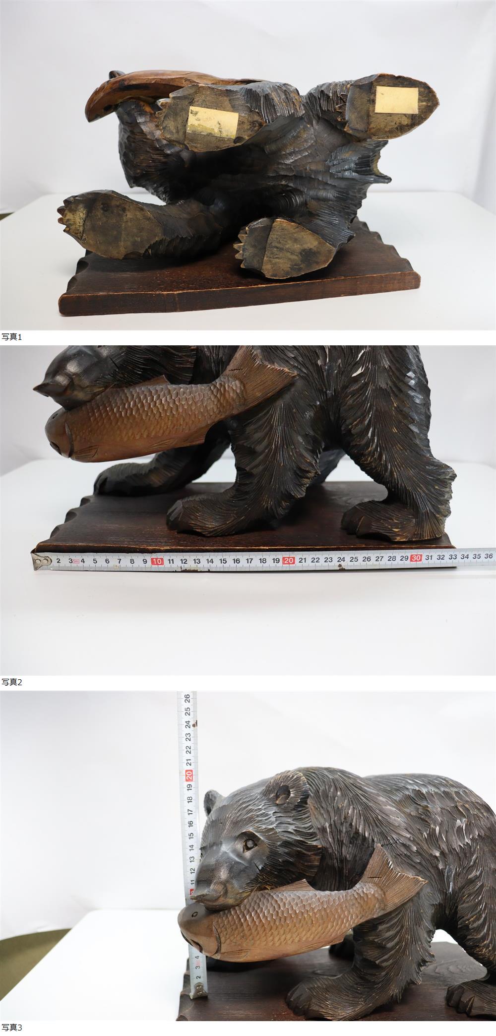 木彫り 熊 置物 魚 台付 木製 工芸品 民芸品 インテリア 飾り オブジェ アンティーク 彫刻 アイヌ コレクション コレクター 希少 当時物 | |||