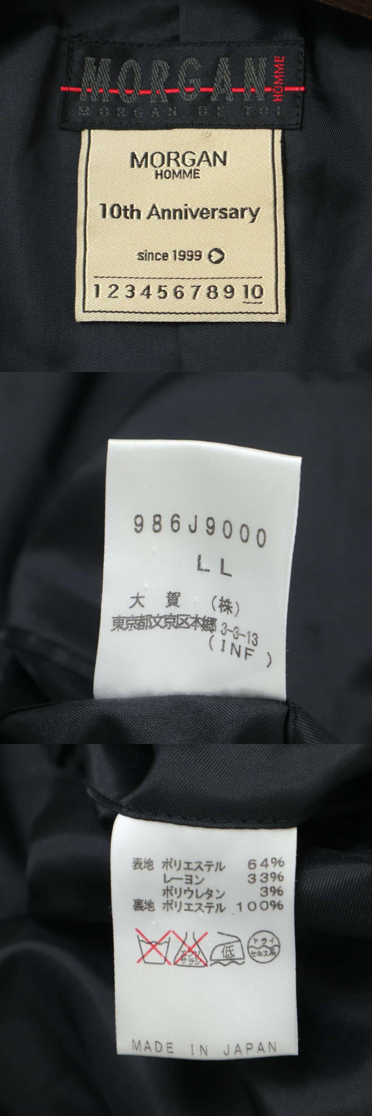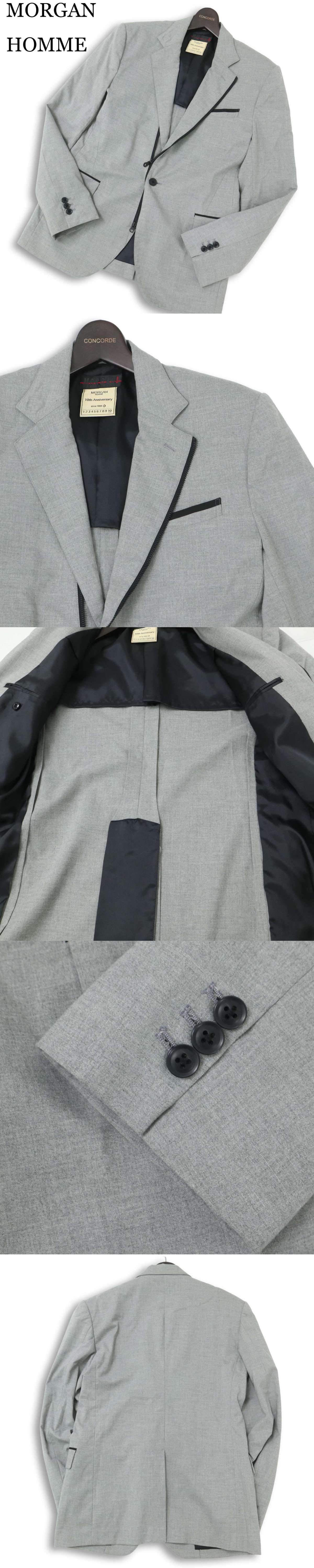 MORGAN HOMME モルガン オム 通年 背抜き★ ジップデザイン テーラード ジャケット Sz.LL メンズ グレー 日本製 收藏