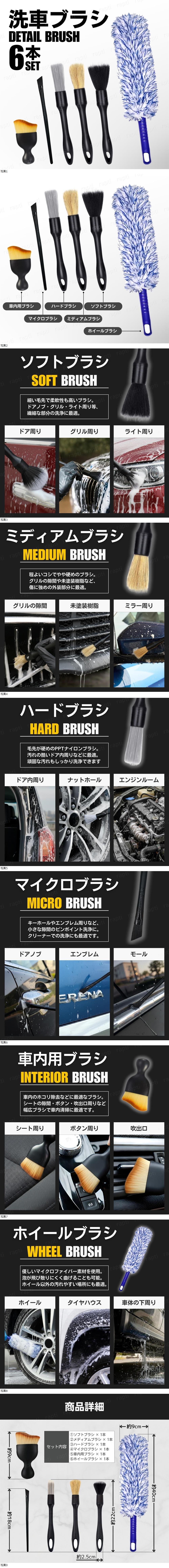 | 洗車ブラシ 6本セット ディテール ディテーリング マイクロファイバー ホイール タイヤ ボディ 車 バイク 隙間 ハケ 筆 洗浄 カー用品 道具 |