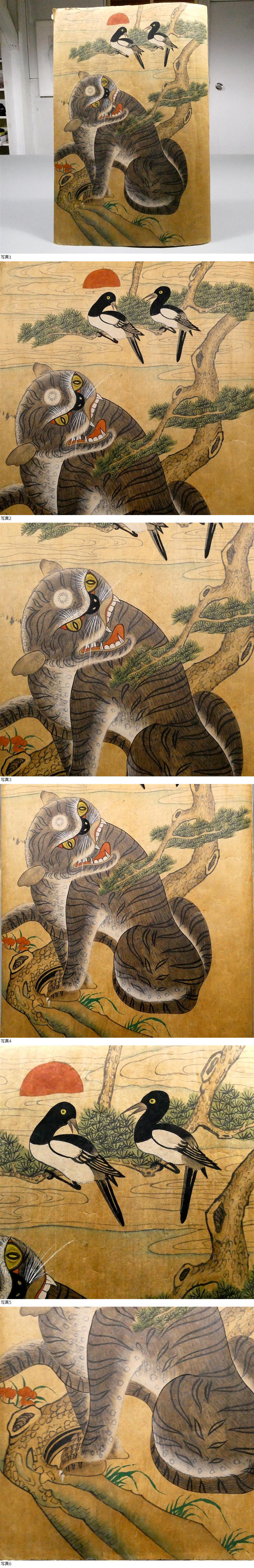 ■ 朝鮮民画 肉筆古画 「鵲虎図」 古拙 素朴な民俗絵画 厄災を払う虎 吉報を運ぶカササギ 開運 厄除け ■