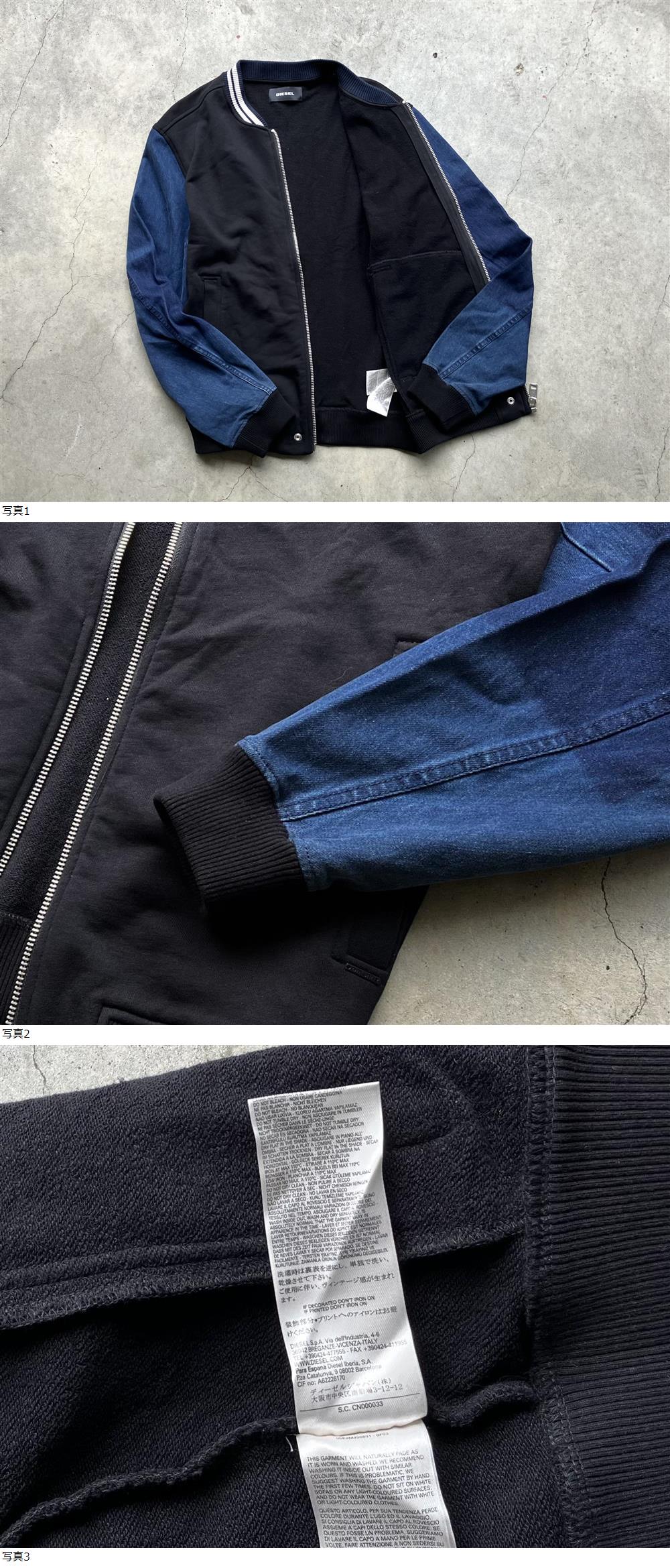 美品 DIESEL 袖デニム切替え スウェットジャケット XL ディーゼル メンズ ブルゾン トレーナー セーター パーカー インディゴ 黒 ブラック 收藏