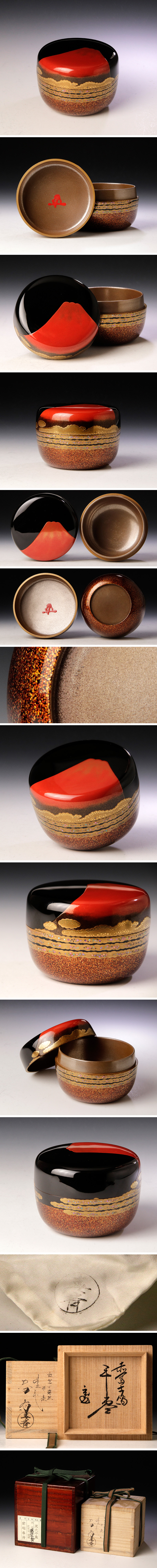| 【古美味】三代前端春斎『鵬雲斎書付』赤富士蒔絵 平棗 茶道具 保証品 |