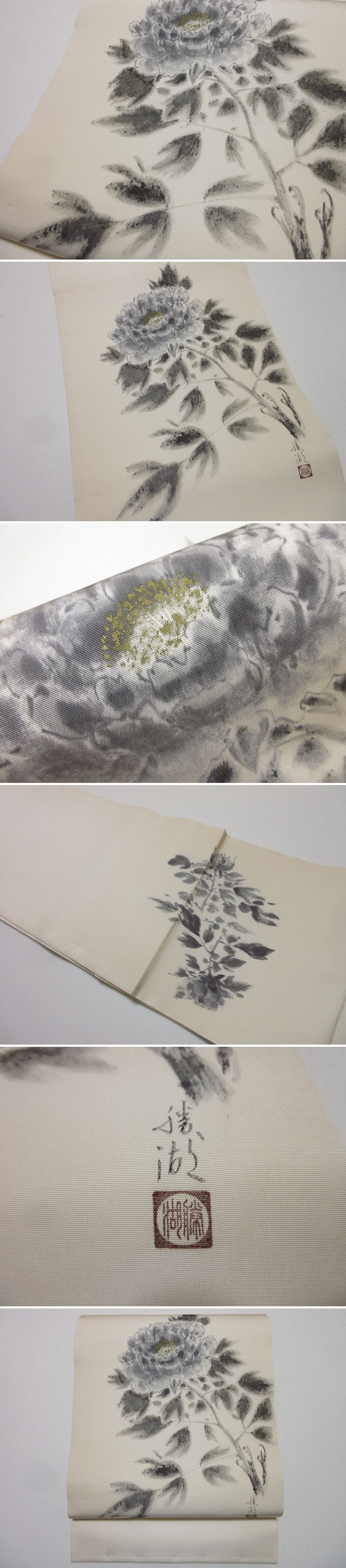 | 商品名 | ドークブア■塩瀬九寸開き名古屋帯 作家 手描 牡丹 未使用 極上の逸品 B27 |