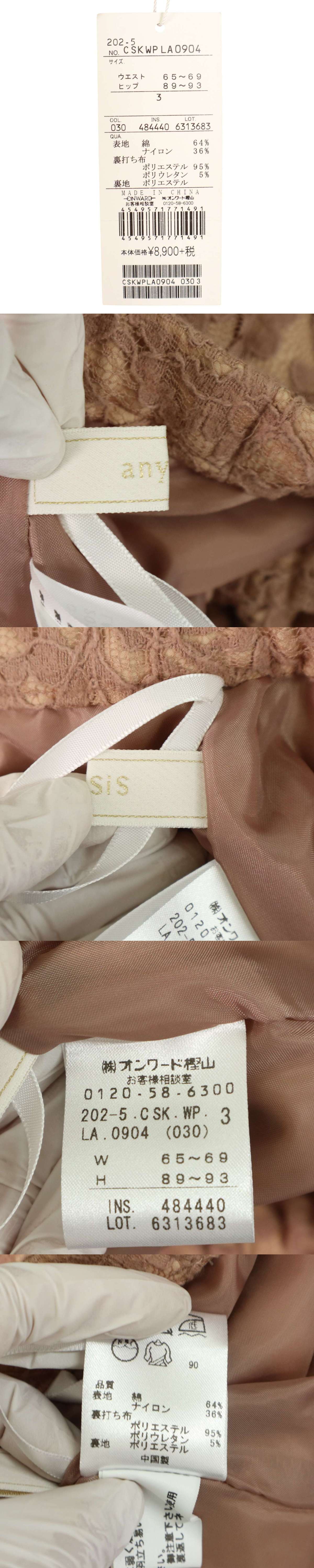 【新品 未使用】 any SiS エニィスィス 春夏 ストレッチ★ 花柄レース レース タイト スカート Sz.3 レディース 收藏