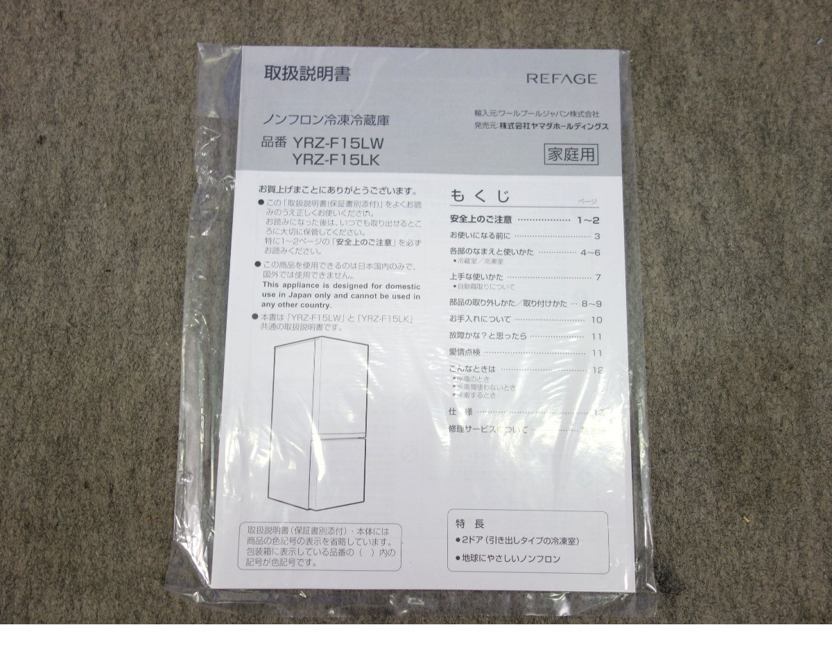 本州送料無料!ヤマダ電機 REFAGE 156L 2ドア冷凍冷蔵庫 YRZ-F15LW ホワイト 2024年製 右開き /N 收藏