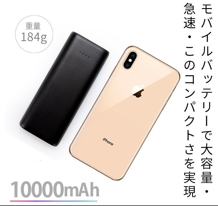 安心・安全・良品 PSE認証取得済 LEDライト付 モバイルバッテリー 大容量10000m ブラック USB出力×2/Type-C入力ポート装備 HR-19BAT03 收藏
