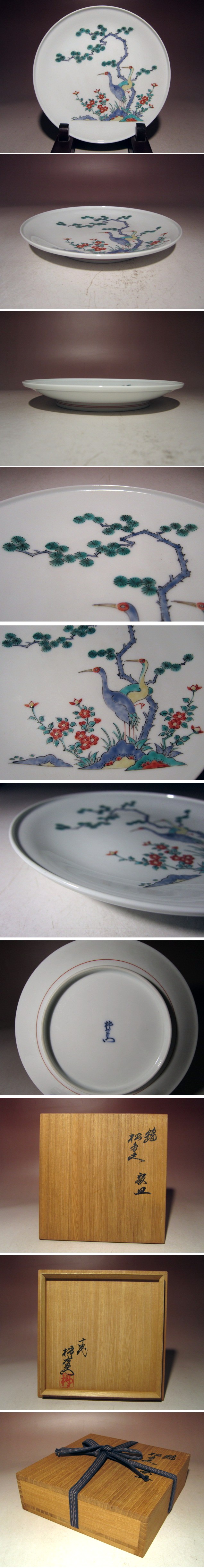 ※即決※ 人間国宝 十四代酒井田柿右衛門 錦 松鳥文額皿★u932 收藏